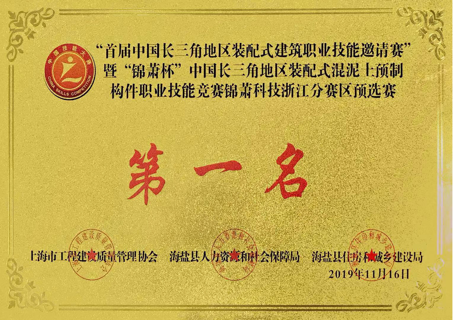 錦蕭杯中國長三角地區(qū)裝配式混凝土預(yù)制構(gòu)件職業(yè)技能競賽浙江分賽區(qū)冠軍