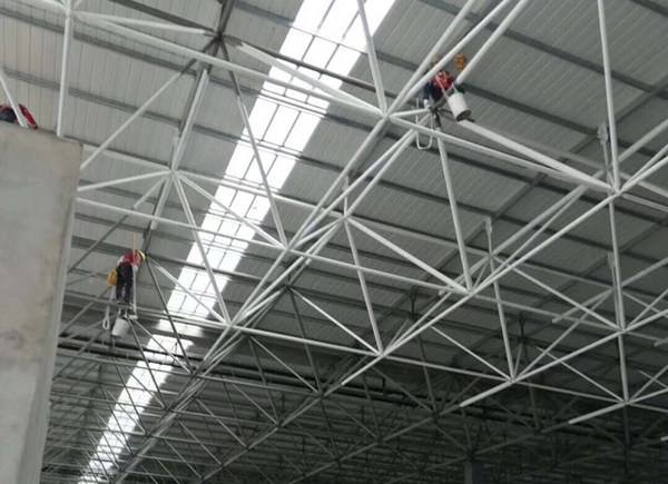 3、屏蔽。鋼結(jié)構(gòu)設(shè)置在耐火材料組成的墻體或頂棚內(nèi),或?qū)?gòu)件包藏在兩片墻之間的空隙里,只要增加少許耐火材料或不增加即能達(dá)到防火的目的。這是一種最為經(jīng)濟(jì)的防火方法。