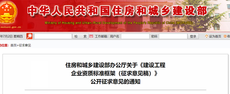 2020年7月2日,住建部發(fā)布《建設(shè)工程企業(yè)資質(zhì)標(biāo)準(zhǔn)框架(征求意見稿)》。
