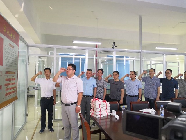 隨后,公司黨支部書記、副總經(jīng)理沈秋良帶領(lǐng)全體黨員重溫入黨誓詞,街道黨委委員繆李偉向公司黨支部全體黨員贈送黨徽和十九大學(xué)習(xí)資料,鼓勵(lì)全體黨員大力弘揚(yáng)“紅船精神”,進(jìn)一步引導(dǎo)黨員同志不忘初心,牢記使命,砥礪前行。
