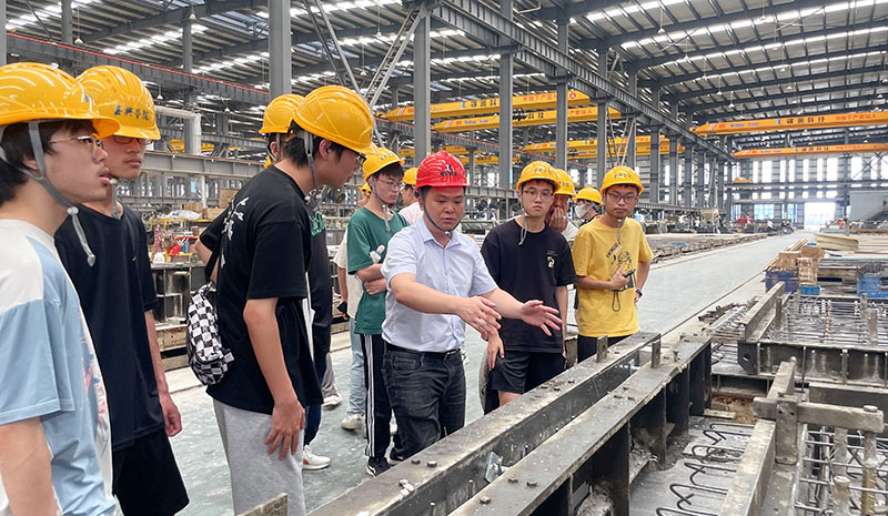 隨后,師生一行在相關負責人的陪同下實地參觀了公司生產(chǎn)車間,現(xiàn)場感受裝配式預制構(gòu)件的生產(chǎn)工藝和流程,公司技術人員對學生們提出的疑惑耐心地進行了一一解答。