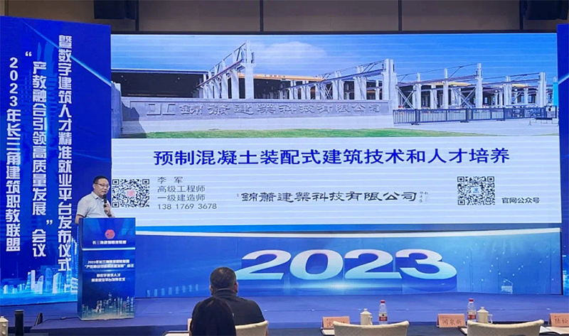 在2023年長三角建筑職教聯(lián)盟“產(chǎn)教融合引領(lǐng)高質(zhì)量發(fā)展”會議暨數(shù)字建筑人才精準就業(yè)平臺發(fā)布儀式上,錦蕭科技成為長三角建筑職教聯(lián)盟新成員,李軍受邀作關(guān)于預(yù)制混凝土裝配式建筑技術(shù)和人才培養(yǎng)的專題講座。同時,作為該領(lǐng)域?qū)<?,李軍對全上海和浙江省住建廳質(zhì)監(jiān)系統(tǒng)培訓(xùn)作《預(yù)制裝配式整體剪力墻建筑的質(zhì)量控制要點》的講課。