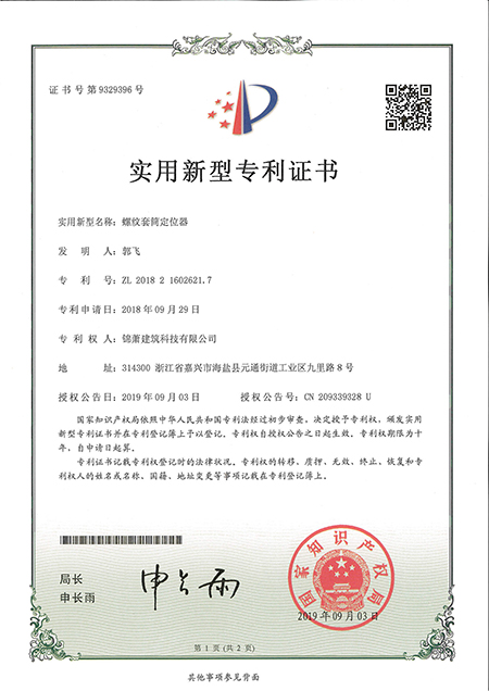 專(zhuān)利證書(shū)--螺紋套筒定位器