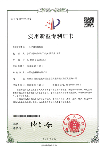 專(zhuān)利證書(shū)--一種空調(diào)板預(yù)制件