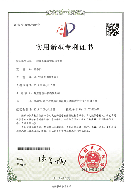 專利證書(shū)--一種疊合梁箍筋定位工裝
